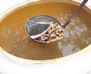 肝癌的食疗(一)― (光华日报)-[食疗药膳] 蛇草花蜜抗癌粥 【配料】:粳米50g, 薏米30g, 茯苓10g, 无花果5粒, 陈皮6g,蛇舌草30g,蜂蜜30g。 【功能】:健脾祛湿、补气扶正、抗癌消肿、清热解毒。 【适应症】:肝癌患者及有肝癌倾向者;肝炎,肝硬化,B型肝炎带菌,肝功能不正常者。 【做法】: 1. 粳米、薏米洗净,拣去杂质;无花果洗净,切成粒状;茯苓、陈皮、蛇舌草同洗净...