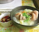 胃酸过多症的食疗(一) ― (光华日报)-[刘哲峰]|[药膳食疗] 山药制酸清汤面 【配料】:面粉200g,怀山粉20g,苏打粉2g,党参6g,干姜6g,陈皮3g,白朮3g,鸡汤1碗,酱油15ml,麻油5ml,食盐3g,青菜50g,木耳10g,葱1根,生姜10g。 【功能】:健脾益气,和胃制酸。 【适应症】:胃酸过多所致之恶心泛酸,头晕疲倦,口干口苦,腹泻便溏,胃痛胃胀等症。 【制法】: 1. 党参、干姜、陈皮、白朮等四味药洗净后,同放入钢锅或砂锅内加 ...