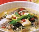 乳腺癌食疗(二) ― (光华日报)-[食疗药膳] 花草鱼头护乳汤 【配料】:鱼头1只(约300-600g)无花果30g、灯笼椒50g、芦笋30g、番茄50g、冬菇3粒、黑木耳... 【功能】:清热解毒,散结消肿,补虚扶正,软坚抗癌。 【适应症】:乳腺癌患者及平常人乳房出现肿块者,乳癌放疗化疗期间或在手术过后,也可用于辅助治疗。 【做法】: 1. 鱼头洗净后,切成大块,冬菇水发后,利成块,木耳水发后,撕成片,无花果洗净...
