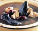 子宫颈癌食疗(一) ― (光华日报)-[食疗药膳] 黑菇二花营养汤 【配料】:猪瘦肉或乌鸡肉200g、香菇5粒、黑木耳15g、无花果10g、马蹄50克、龙眼15g、北芪20g、银花15g... 【功能】:益气补血、解毒抗癌。 【适应症】:子宫颈癌患者疲倦、体弱、带下量多,或者化疗放疗后出现头晕体弱,腰酸乏力等症者。平常人食用,也可用于补充精力、恢复体力。 【做法】: 1. 瘦肉或乌鸡肉洗净,切块。香菇水发后,洗净,拣去杂质...